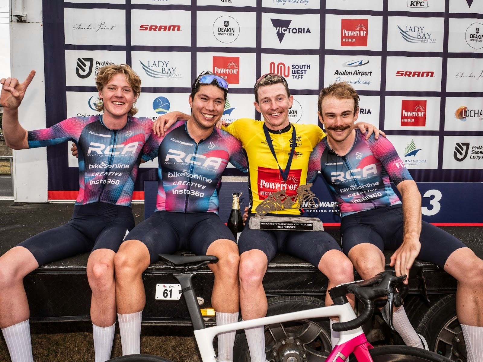 On Feb 28th 2026, RCA BikesOnline lined up for the iconic 267 km Melbourne to Warrnambool. With a tail-crosswind likely to make the race fast and aggressive, the goal was clear: animate the race early. Our squad—Dylan Proctor-Parker, Craig Wiggins, Alex Baker, and Josh Beikoff - were ready to get stuck in.